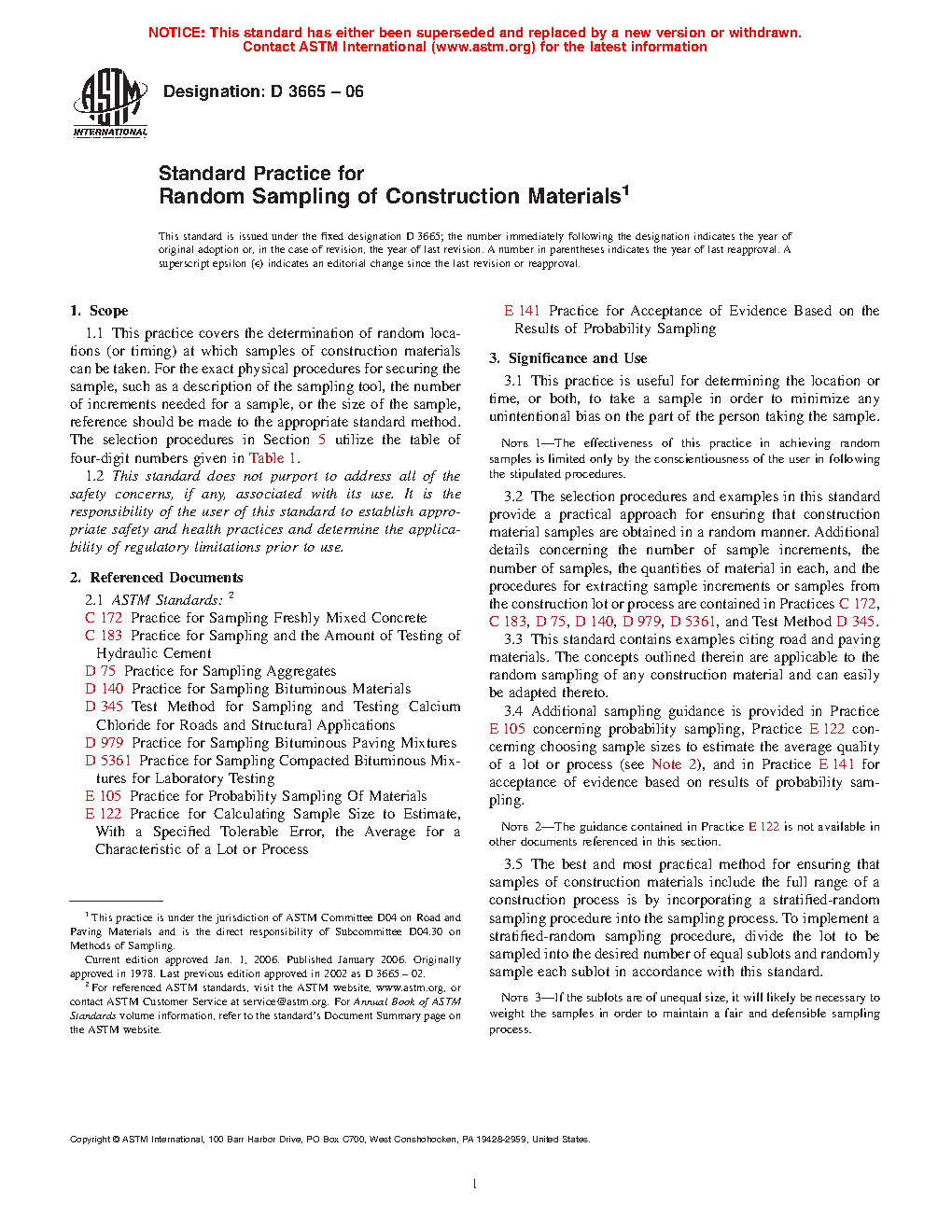 4.3 This standard contains examples citing road and paving materials. The concepts outlined herein are applicable to the random sampling of any construction material and can easily be adapted thereto.