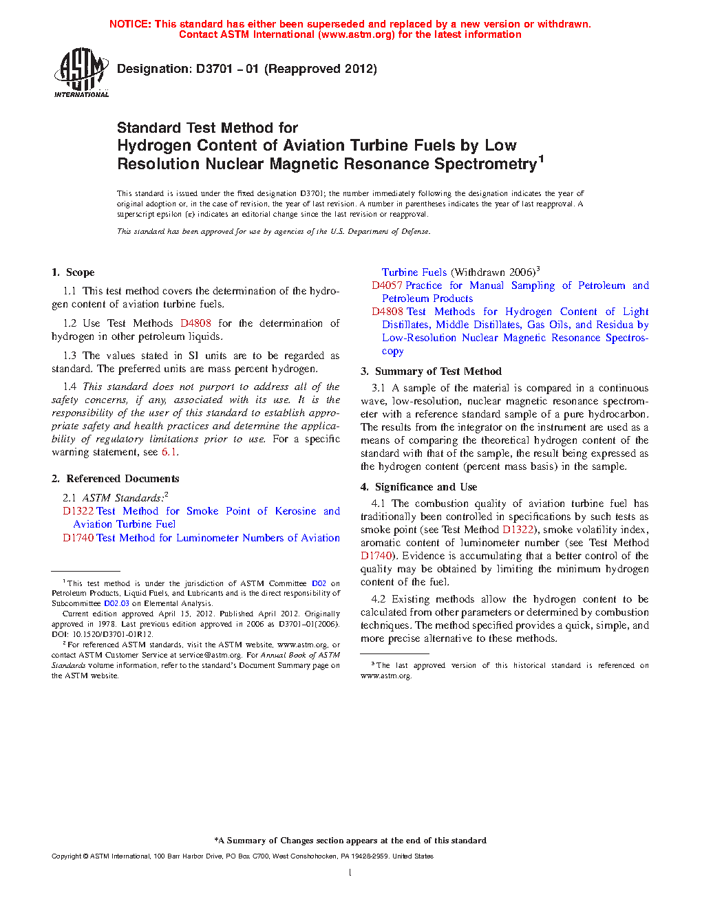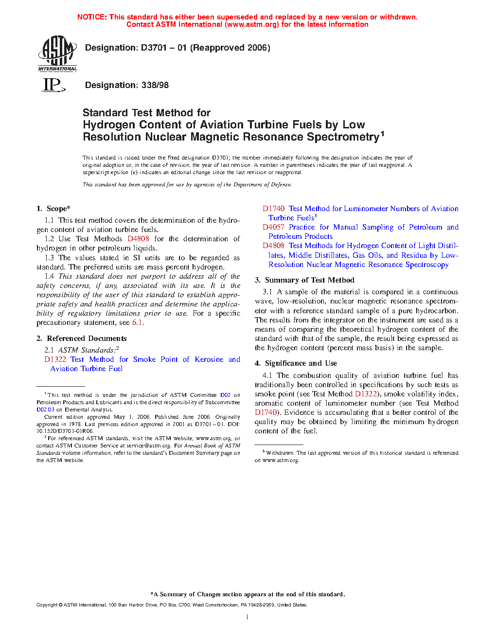 1.1 This test method covers the determination of the hydrogen content of aviation turbine fuels.