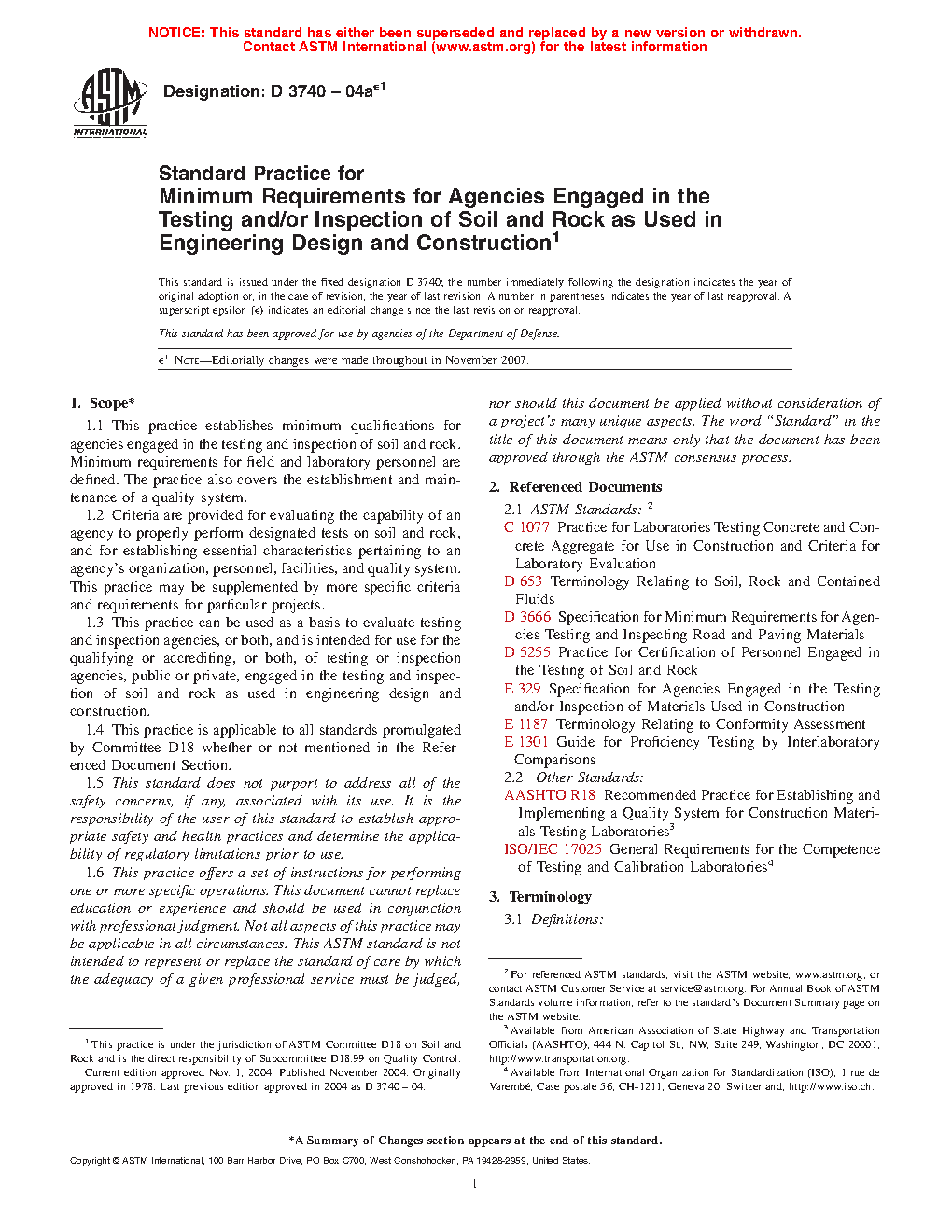 1.2 Criteria are provided for evaluating the capability of an agency to properly perform designated tests on soil and rock, and for establishing essential characteristics pertaining to an agency's organization, personnel, facilities, and quality system. This practice may be supplemented by more specific criteria and requirements for particular projects.