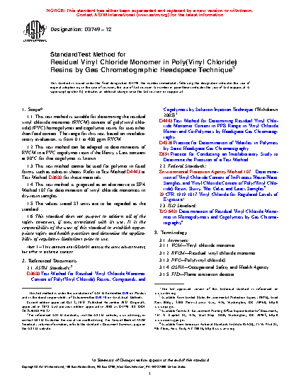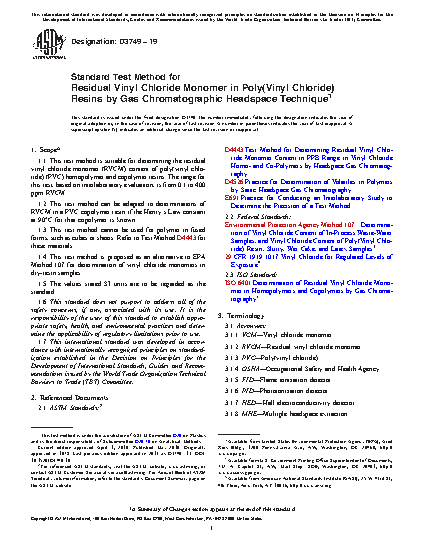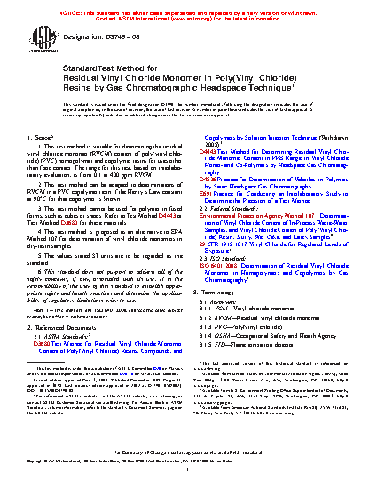 1.4 This test method is proposed as an alternative to EPA Method 107 for determination of vinyl chloride monomers in dry-resin samples.