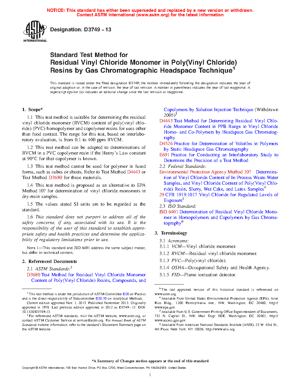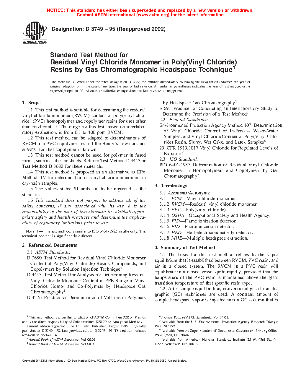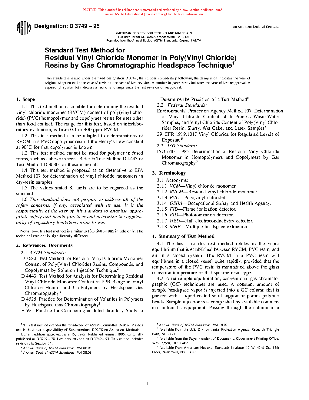 5.1 Poly(vinyl chloride) resins must contain a minimum possible amount of unreacted, or free, VCM.