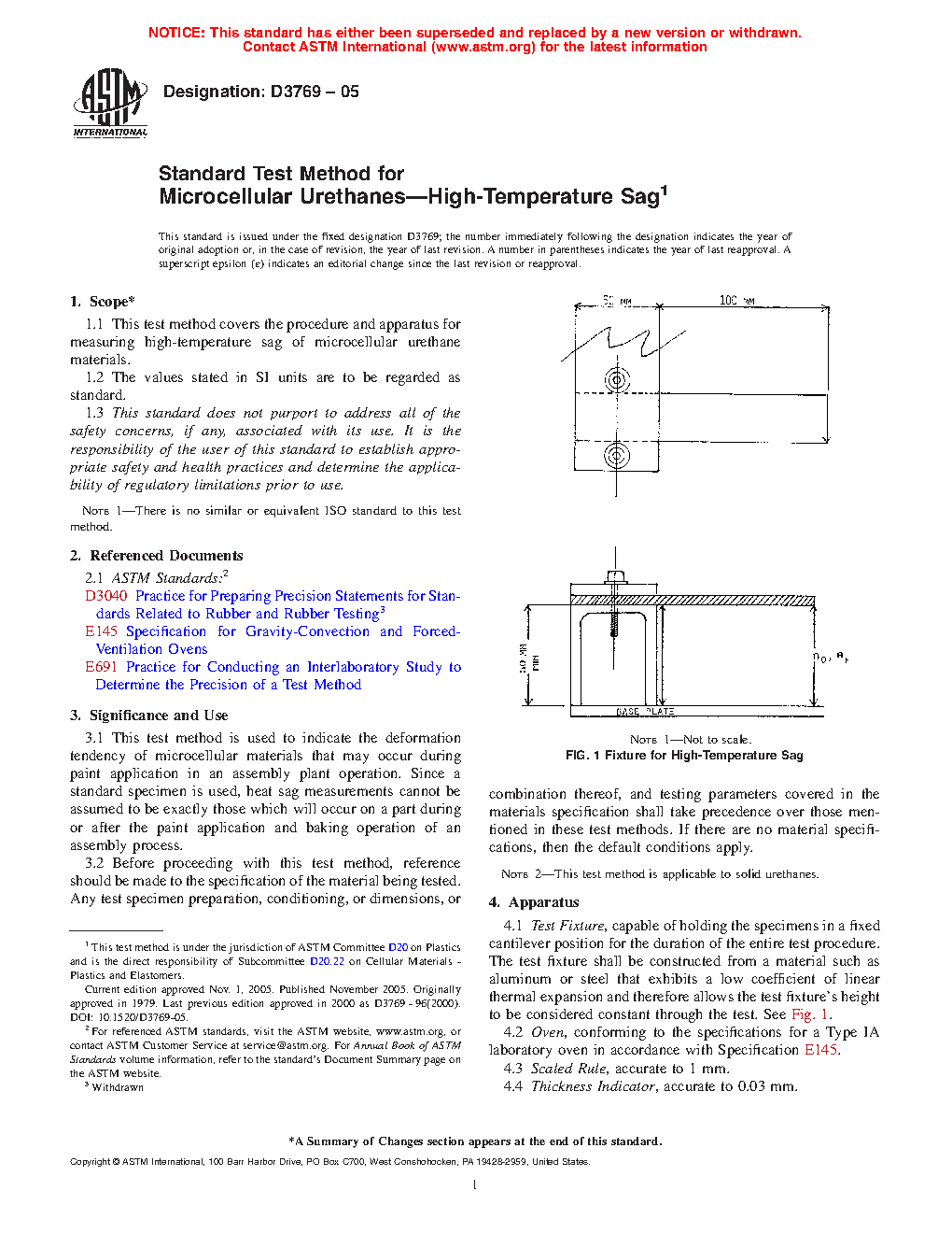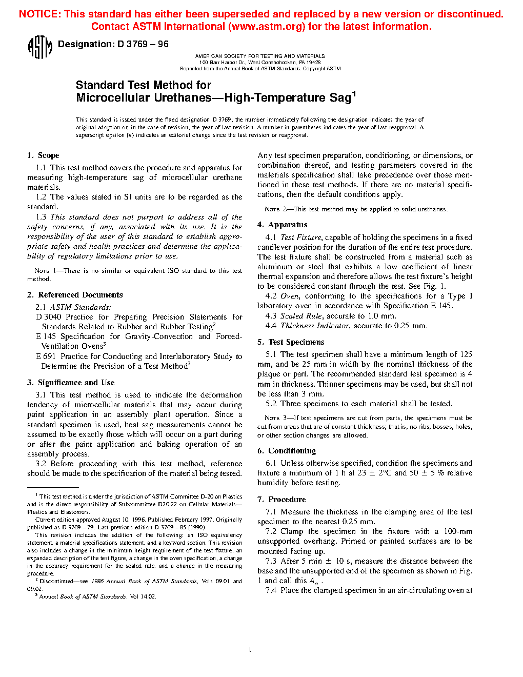 1.1 This test method covers the procedure and apparatus for measuring high-temperature sag of microcellular urethane materials.