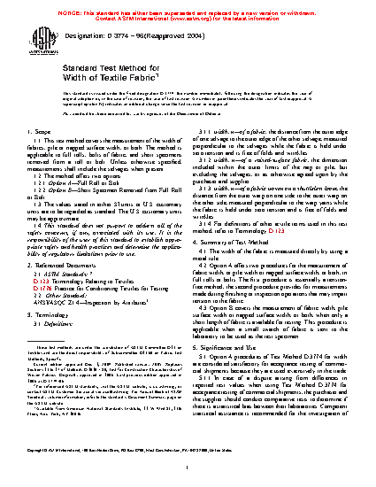 5.1 Option A procedures of Test Method D3774 for width are considered satisfactory for acceptance testing of commercial shipments because they are used extensively in the trade.