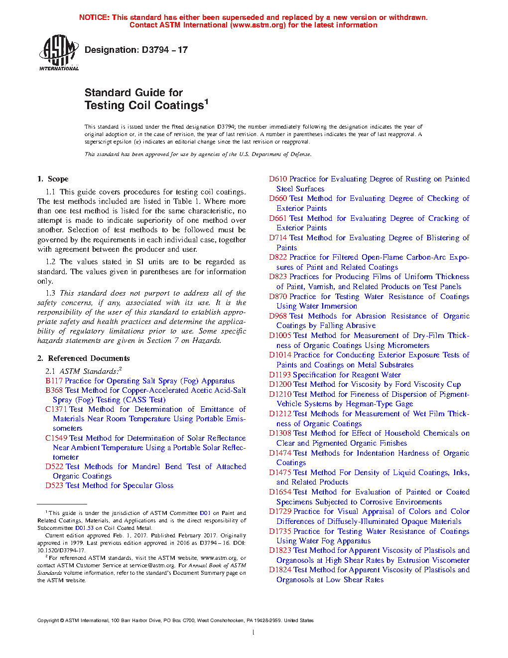 4.1 This guide represents a collection of pertinent ASTM test methods used within the coil coatings industry. In the past coil coaters world wide depended on industry standards written by the National Coil Coaters Association. That association, working cooperatively with ASTM, will no longer issue new, nor update old, standards.