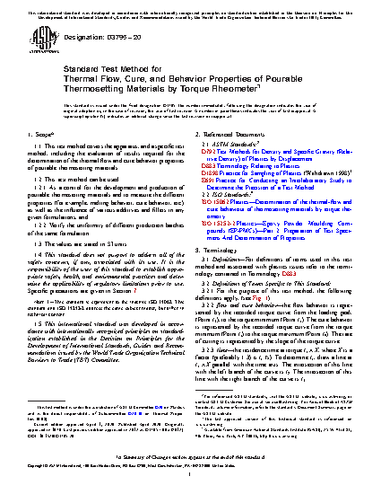 1.1 This test method covers the apparatus, and a specific test method, including the evaluation of results required for the determination of the thermal flow and cure behavior properties of pourable thermosetting materials.