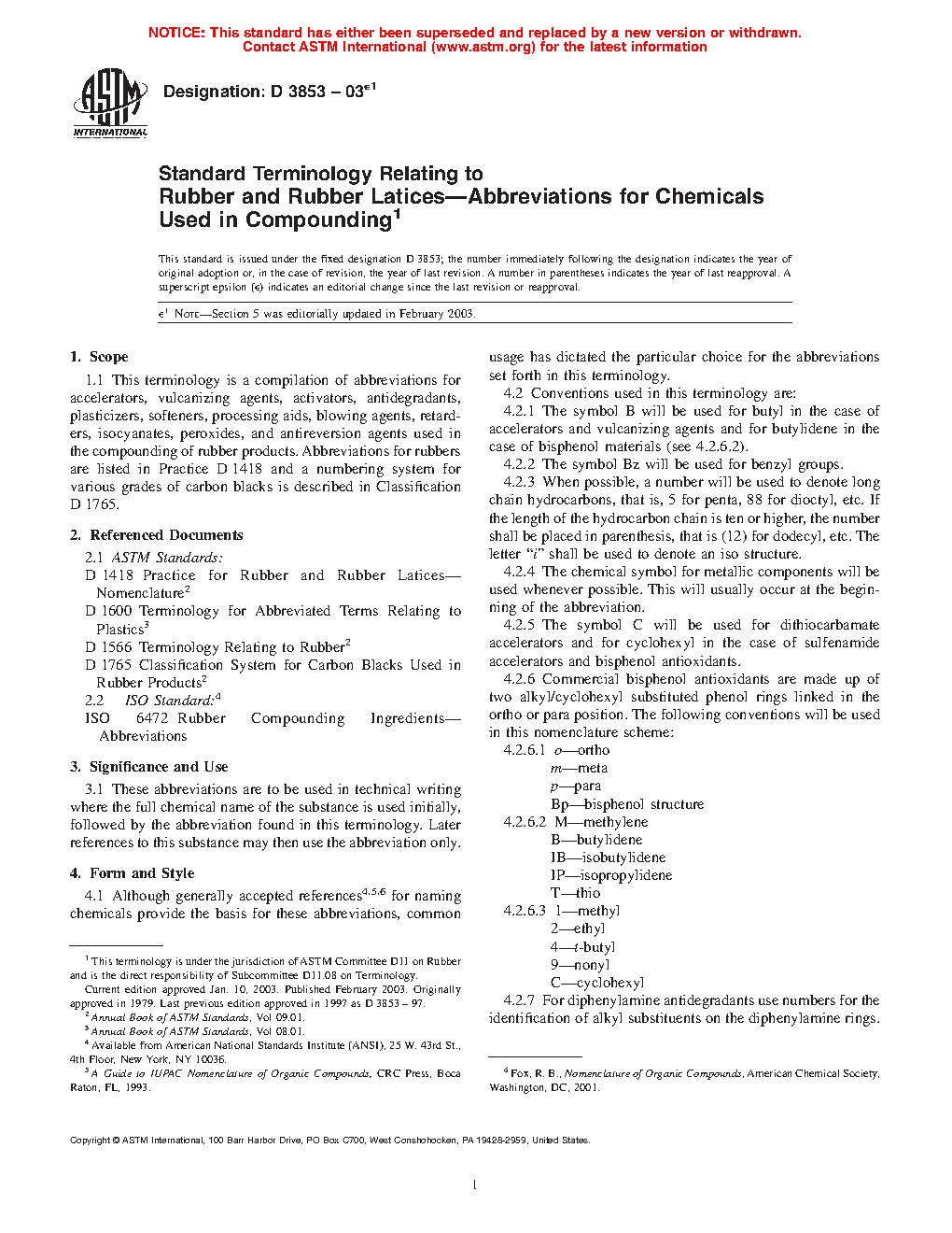 1.1 This terminology is a compilation of abbreviations for accelerators, vulcanizing agents, activators, anti-degradants, plasticizers, softeners, processing aids and blowing agents used in the compounding of rubber products. Abbreviations for rubbers are listed in Practice D 1418 and a numbering system for various grades of carbon blacks is described in Classification D 1765.