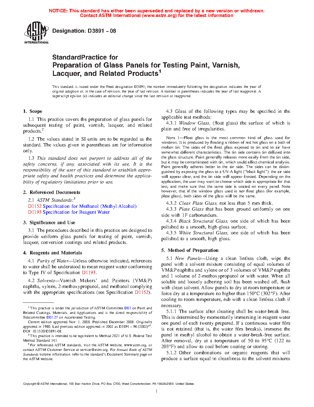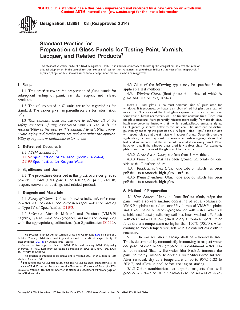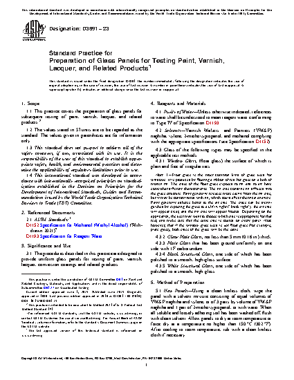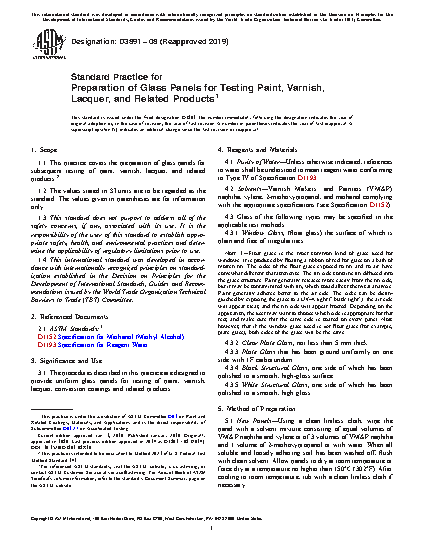 1.1 This practice covers the preparation of glass panels for subsequent testing of paint, varnish, lacquer, and related products.2