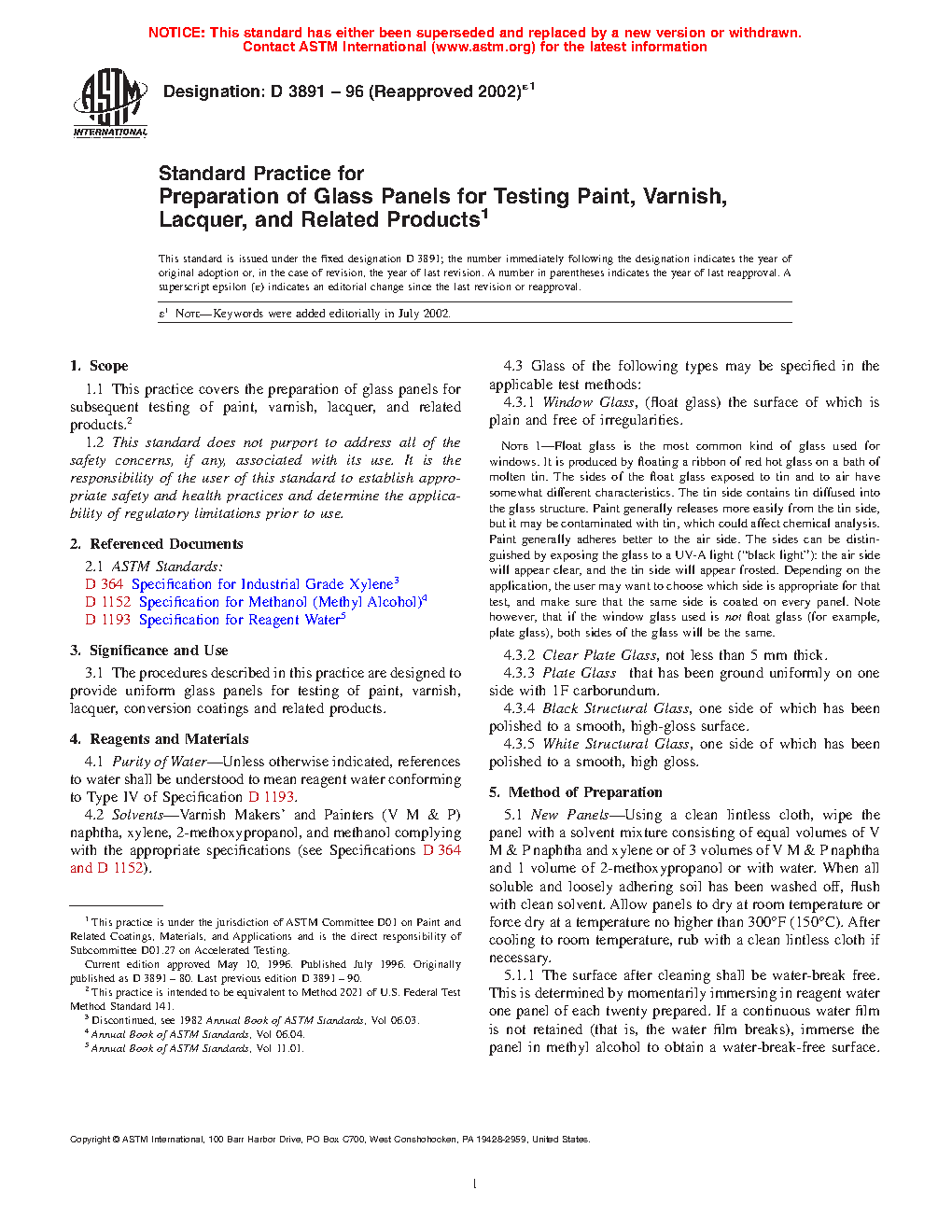 3.1 The procedures described in this practice are designed to provide uniform glass panels for testing of paint, varnish, lacquer, conversion coatings and related products.