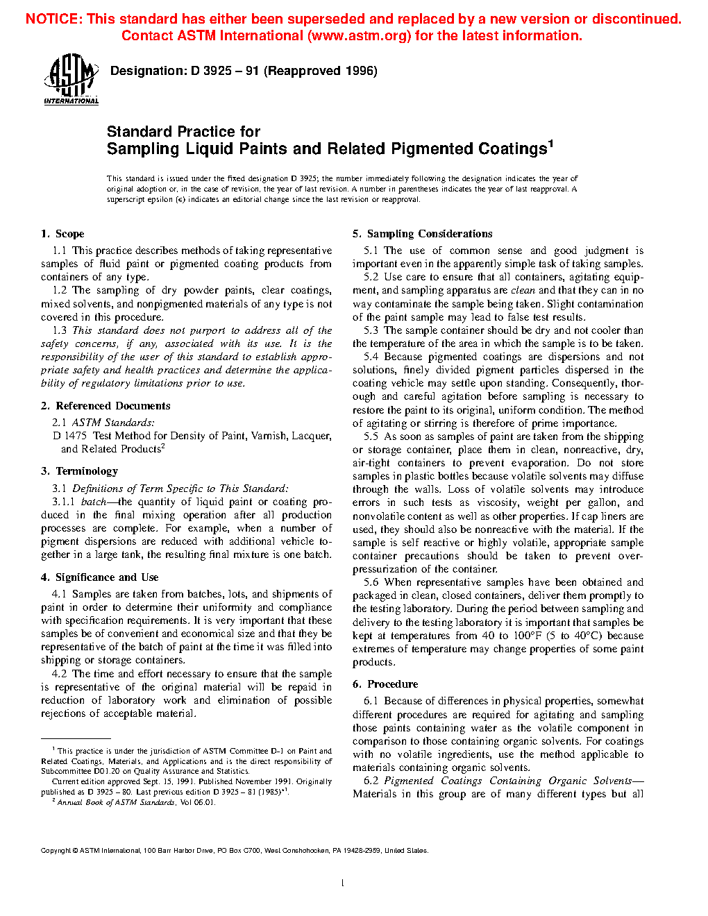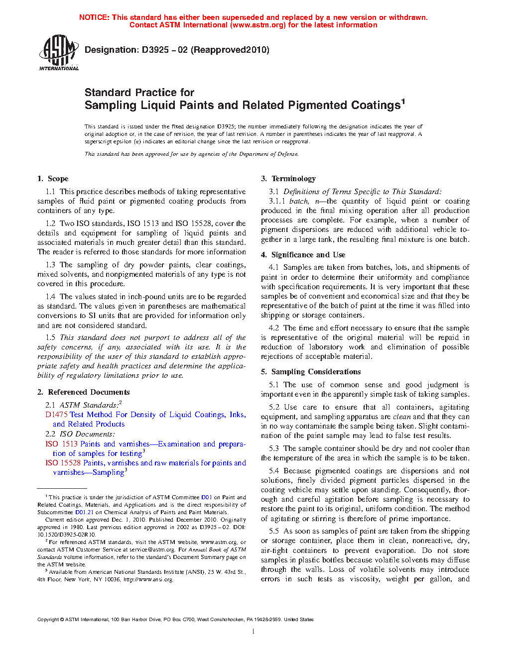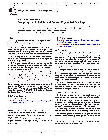 Standard Practice for Sampling Liquid Paints and Related Pigmented Coatings