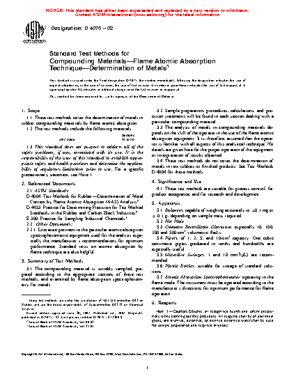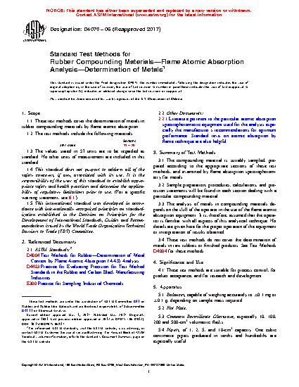 1.1 These test methods cover the determination of metals in rubber compounding materials by flame atomic absorption.