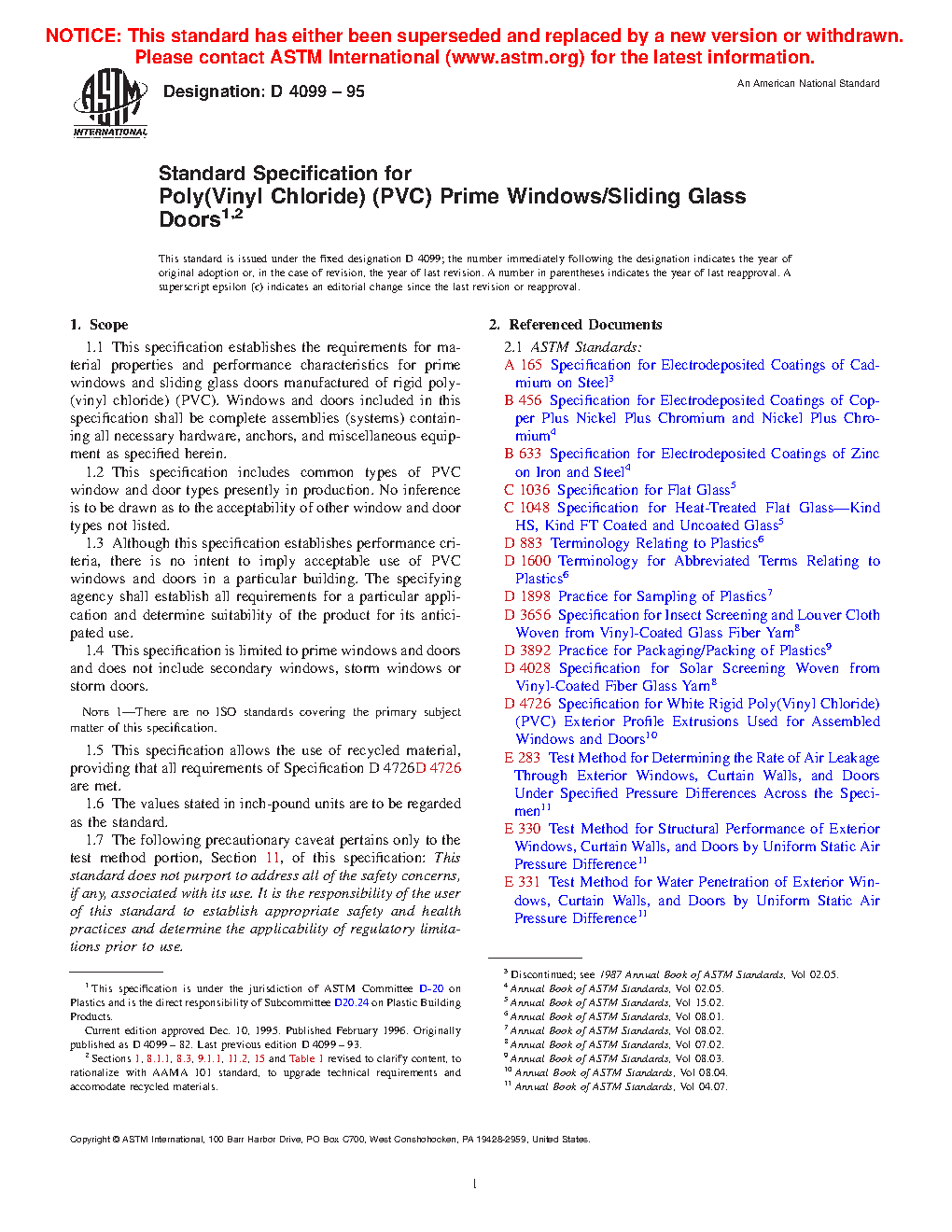 Standard Specification for Poly(Vinyl Chloride) (PVC) Prime Windows/Sliding Glass Doors