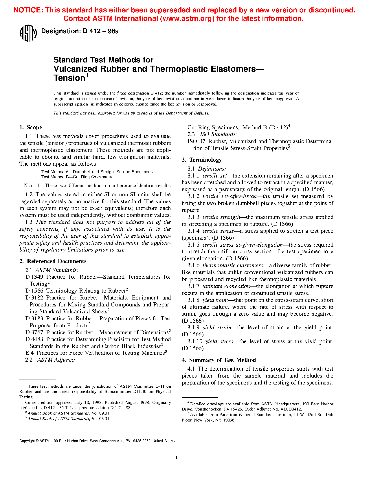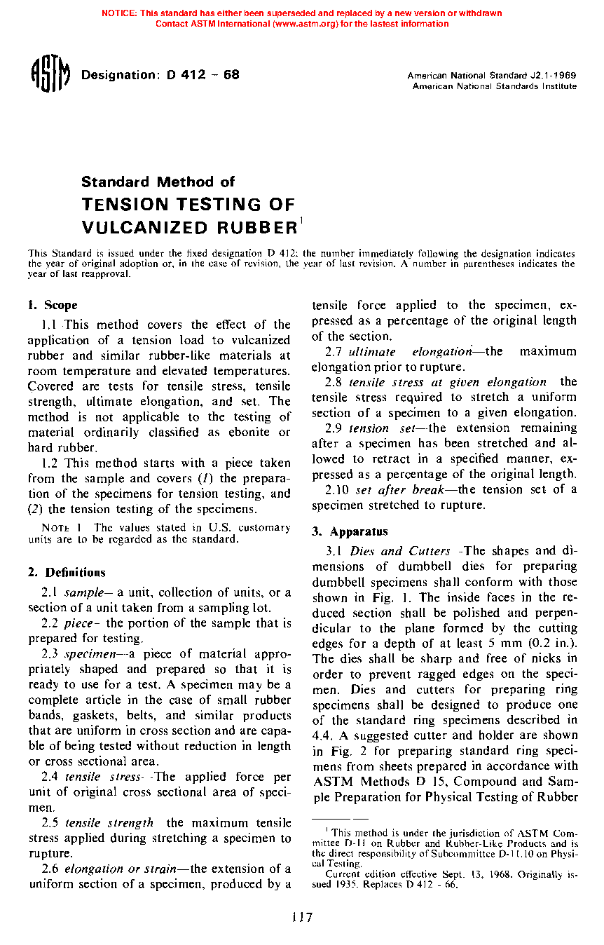 1.1 These test methods cover procedures used to evaluate the tensile (tension) properties of vulcanized thermoset rubbers and thermoplastic elastomers. These methods are not applicable to ebonite and similar hard, low elongation materials. The methods appear as follows: