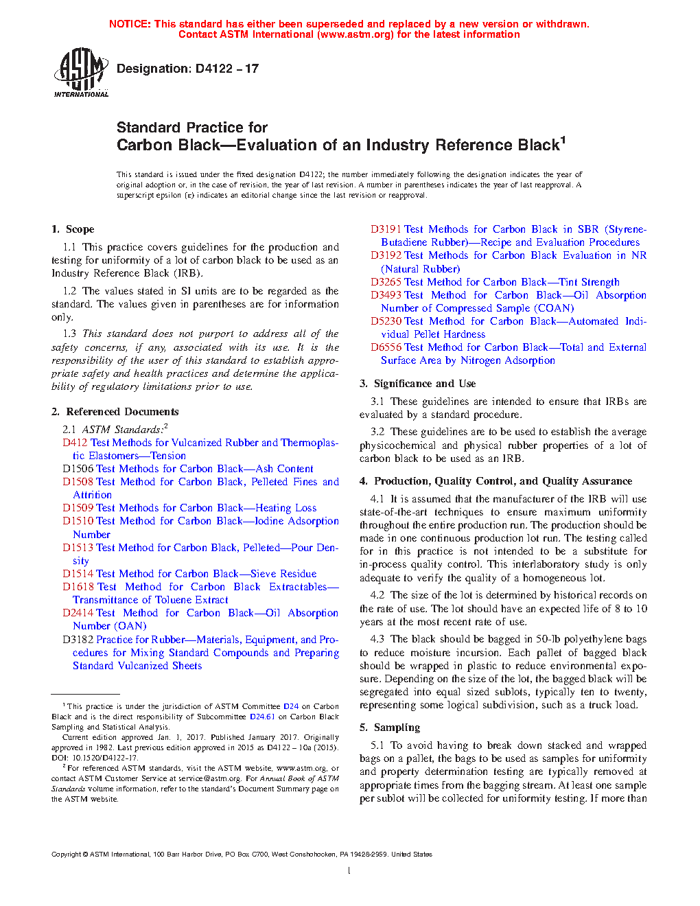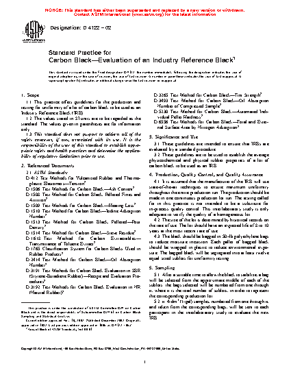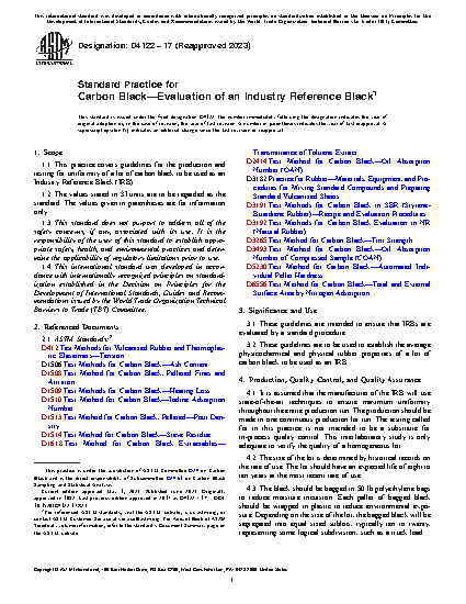 Standard Practice for Carbon Black—Evaluation of an Industry Reference Black