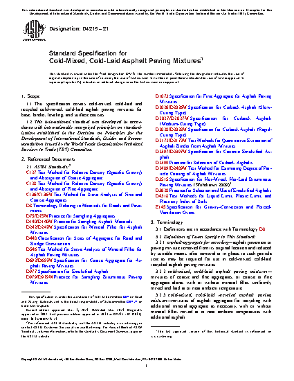 1.1 This specification covers cold-mixed, cold-laid and recycled cold-mixed, cold-laid asphalt paving mixtures for base, binder, leveling, and surface courses.