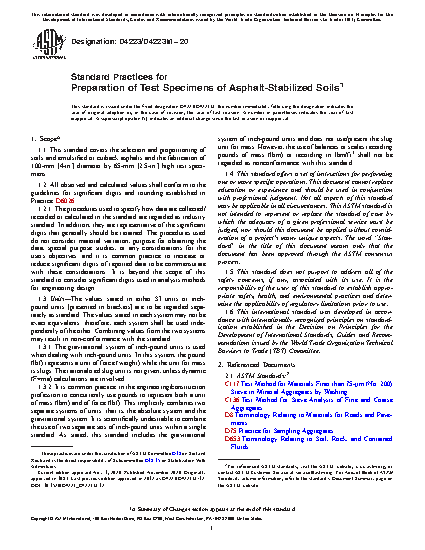5.1 This standard is intended for the preparation of standard specimens of soil-asphalt mixtures suitable for tests of Test Methods D1560, D1561, D4123, and other tests using specimens of the above dimensions. This standard is limited to only fine-grained soils as defined in 7.1.