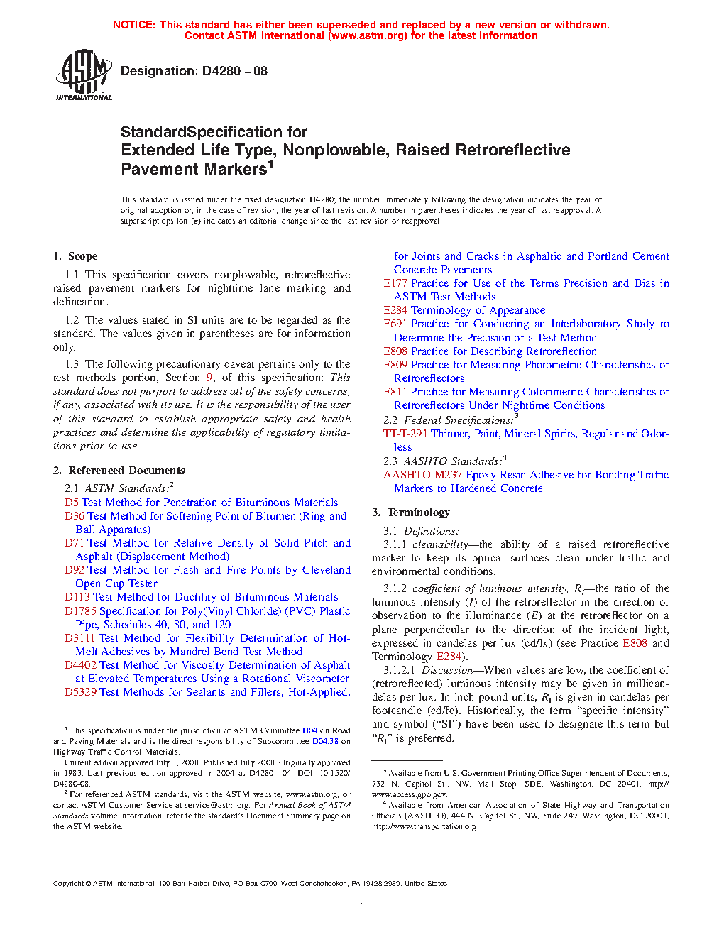 1.1 This specification covers nonplowable, retroreflective raised pavement markers for nighttime lane marking and delineation.