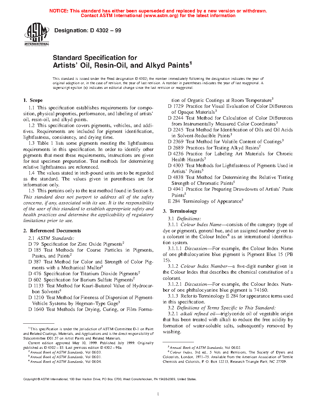 1.2 This specification covers pigments, vehicles, and additives. Requirements are included for pigment identification, lightfastness, consistency, and drying time.