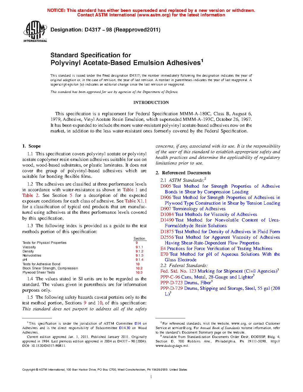 1.3 The following index is provided as a guide to the test methods portion of this specification: