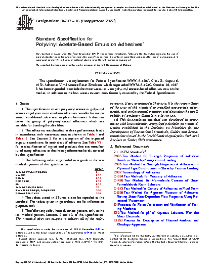 1.1 This specification covers polyvinyl acetate or polyvinyl acetate copolymer resin emulsion adhesives suitable for use on wood, wood-based substrates, or plastic laminates. It does not cover the group of polyvinyl-based adhesives which are suitable for bonding flexible films.