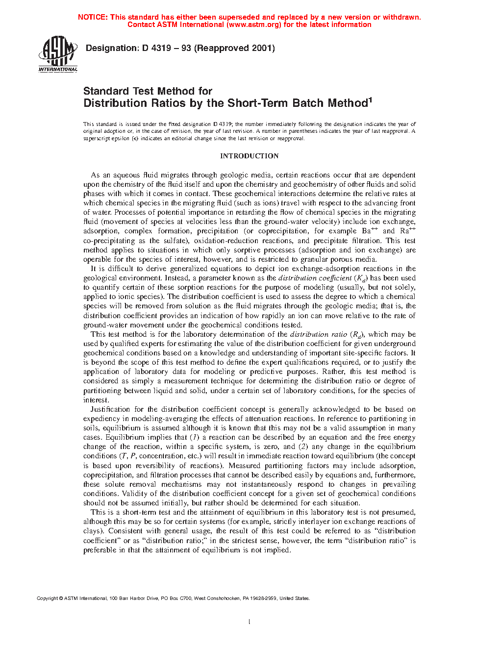 ASTM D4319-93(2001) (R1993)