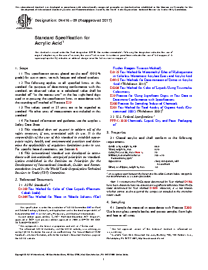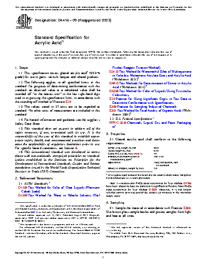 1.1 This specification covers glacial acrylic acid2 (99.0 % grade) for use in paint, varnish, lacquer and related products.