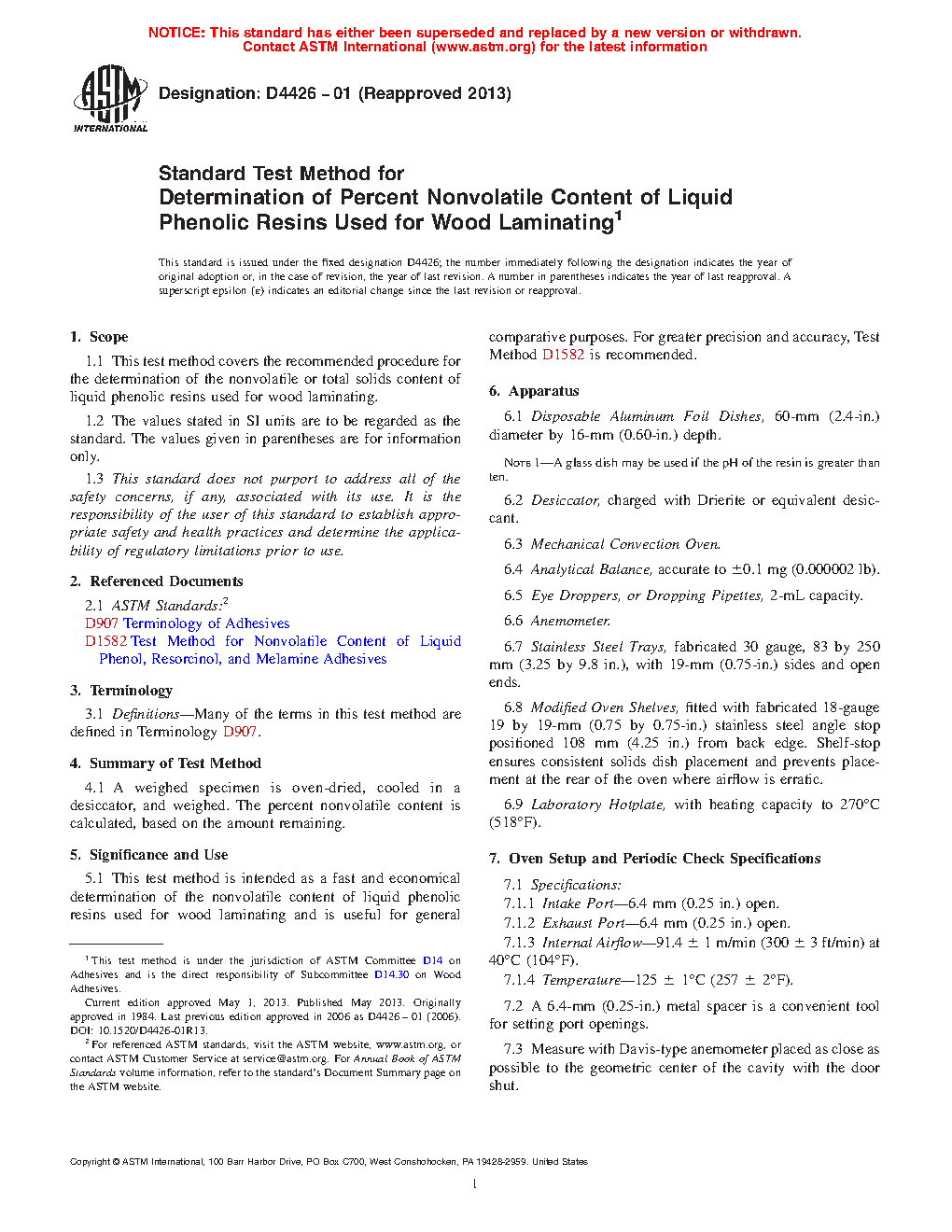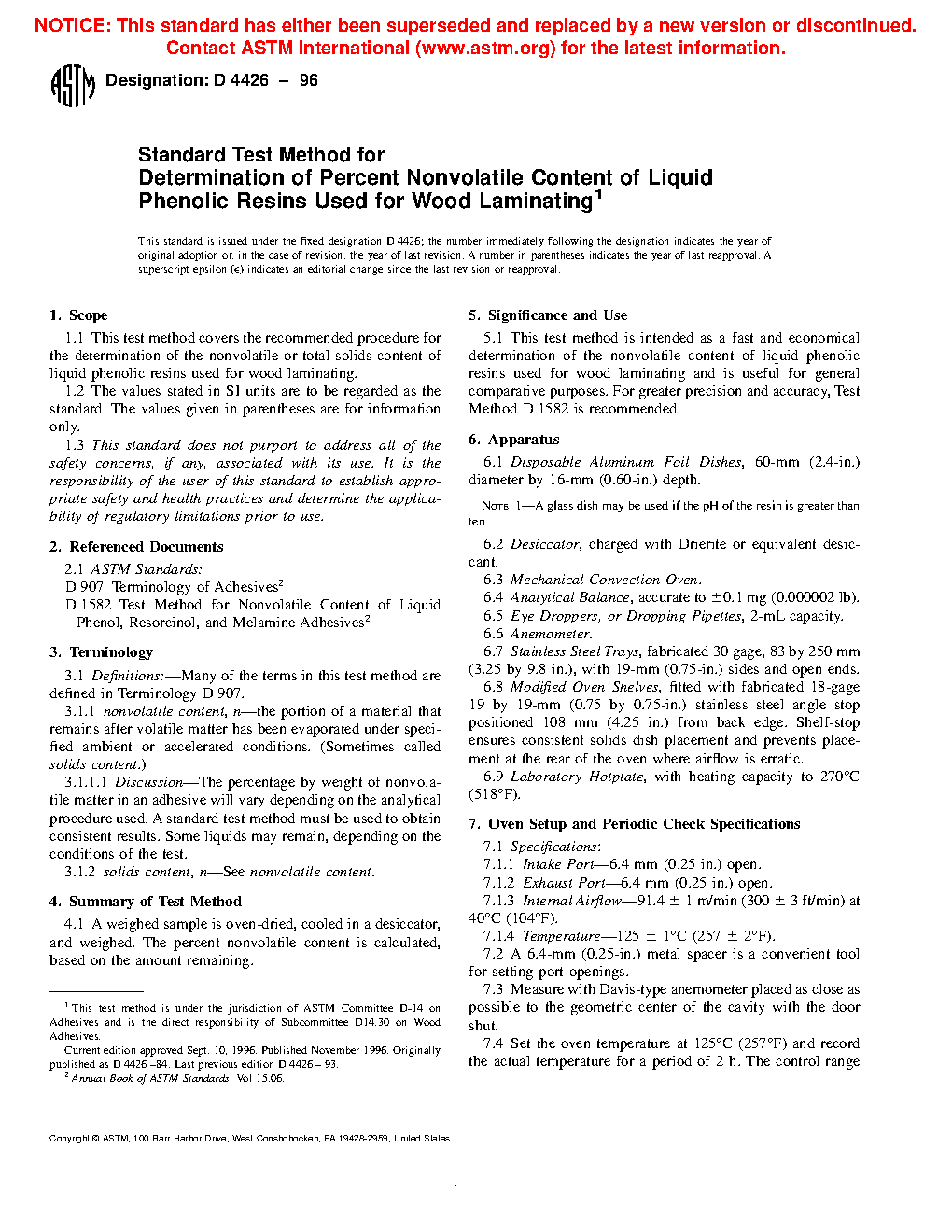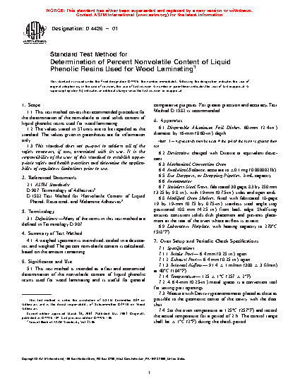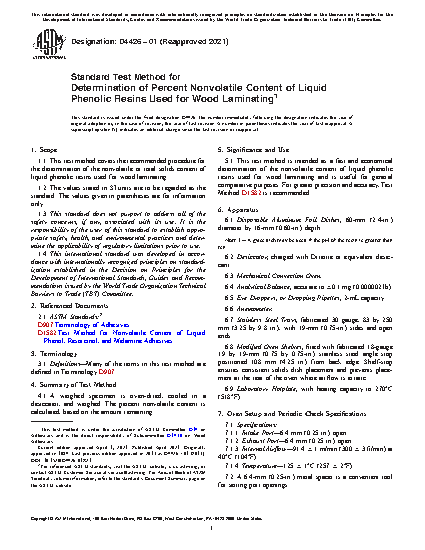 Standard Test Method for Determination of Percent Nonvolatile Content of Liquid Phenolic Resins Used for Wood Laminating