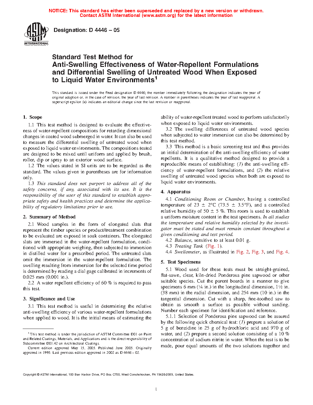 3.2 The swelling differences of untreated wood species when subjected to water immersion can also be determined by this test method.