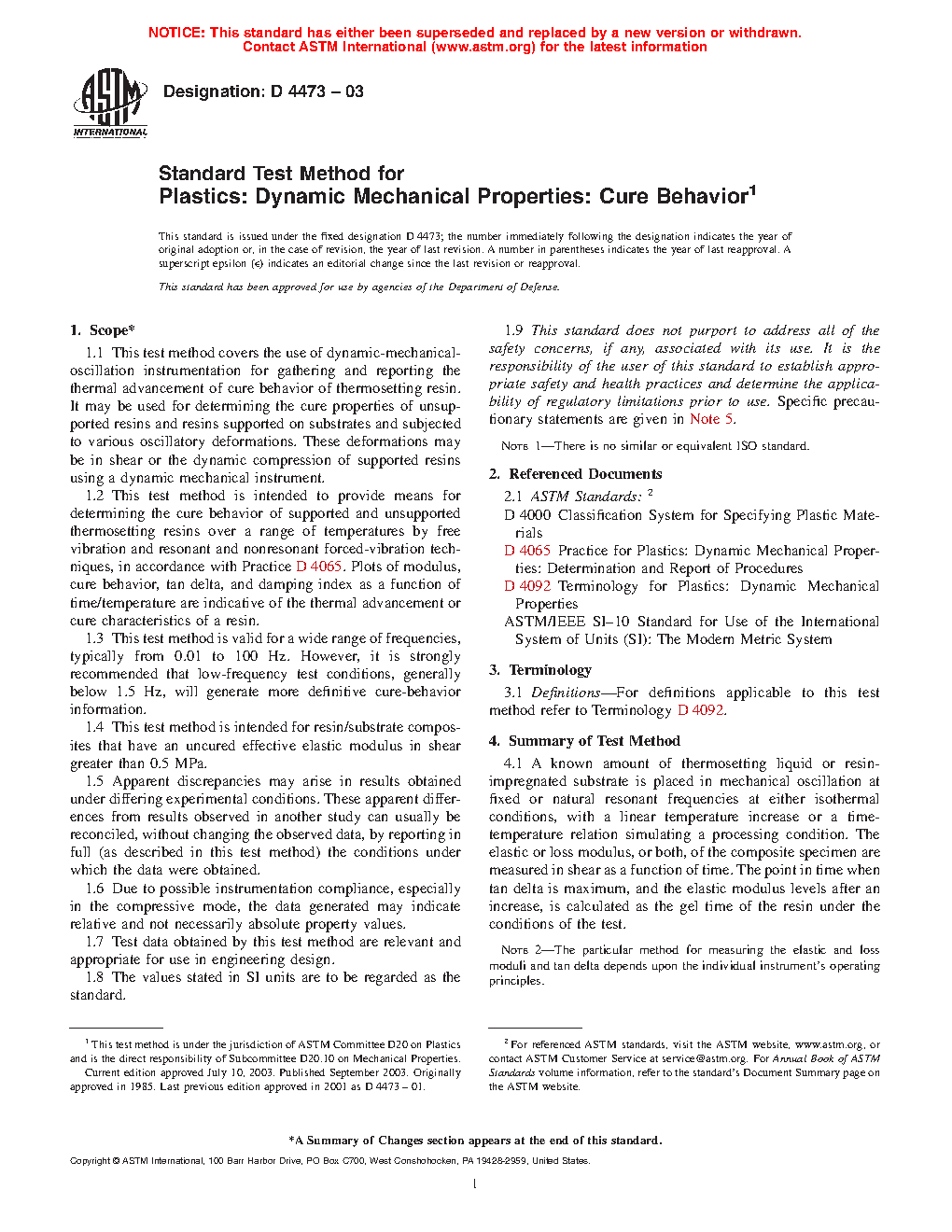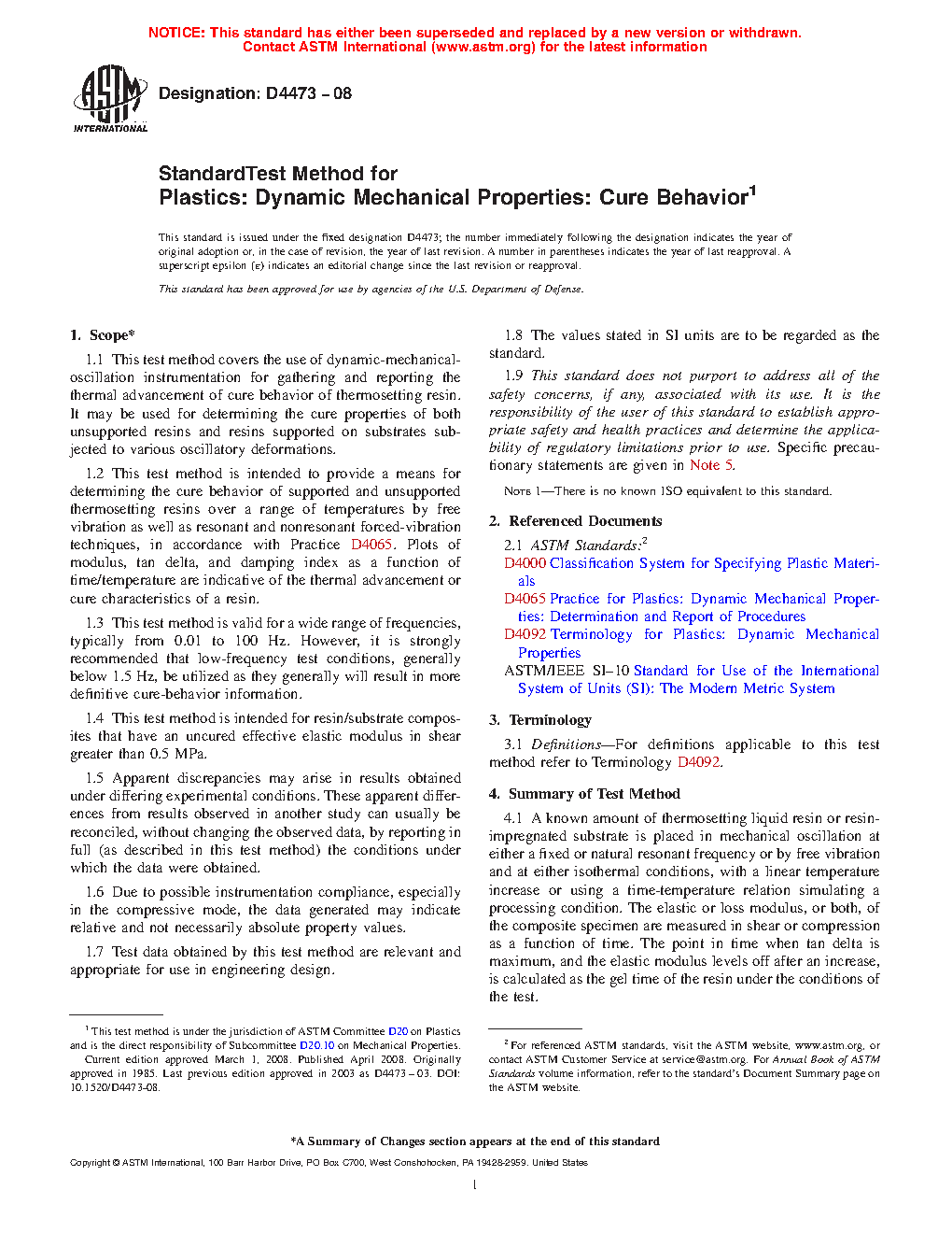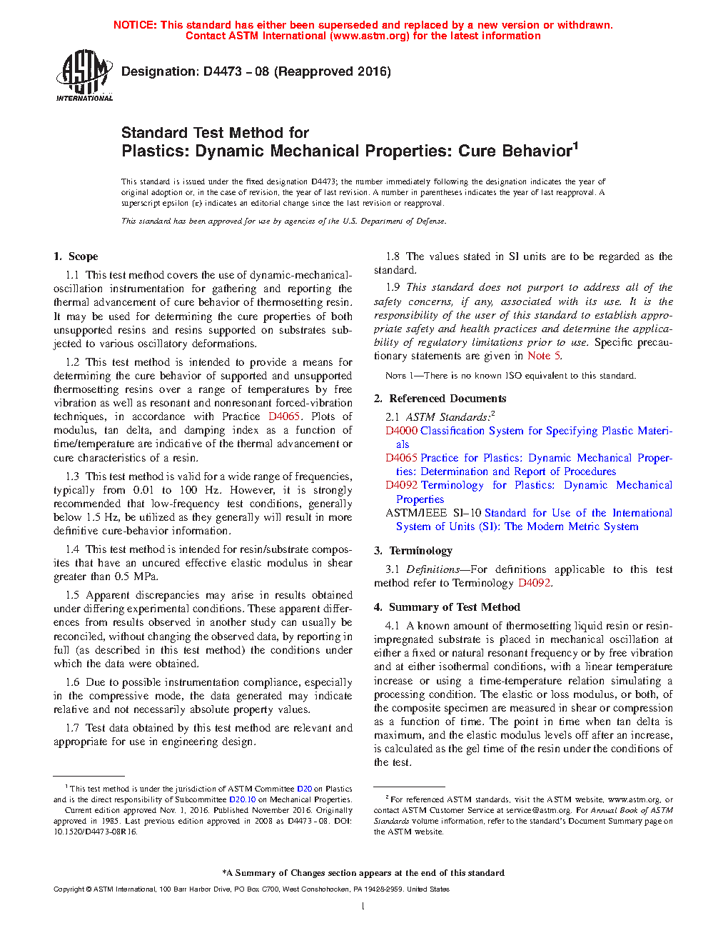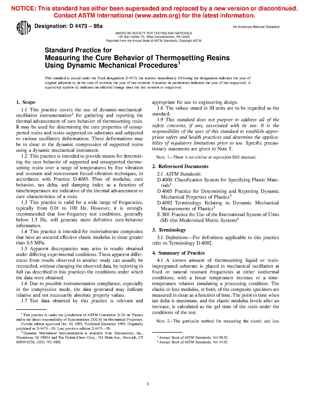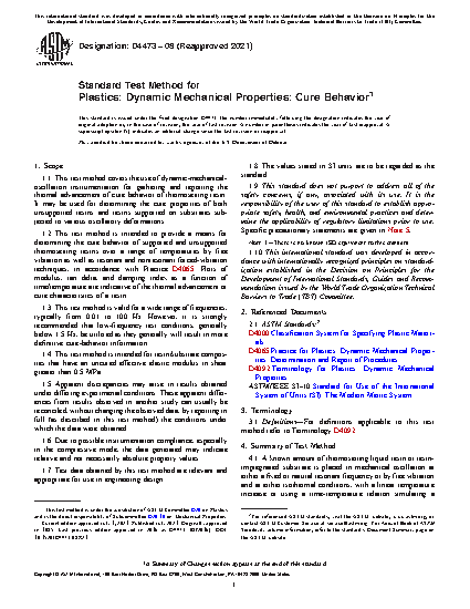 1.2 This test method is intended to provide a means for determining the cure behavior of supported and unsupported thermosetting resins over a range of temperatures by free vibration as well as resonant and nonresonant forced-vibration techniques, in accordance with Practice D4065. Plots of modulus, tan delta, and damping index as a function of time/temperature are indicative of the thermal advancement or cure characteristics of a resin.
