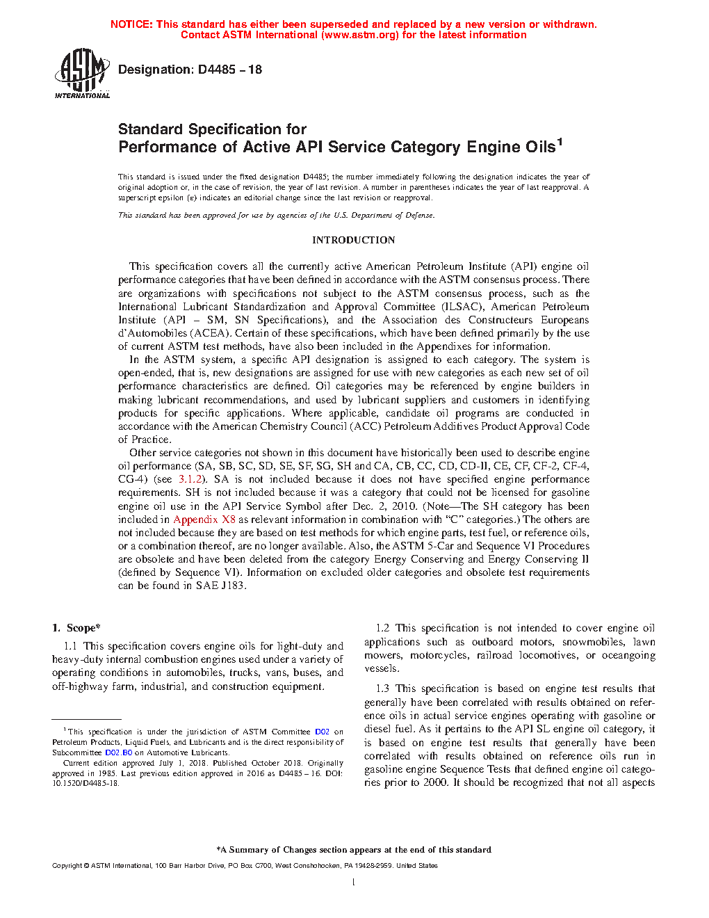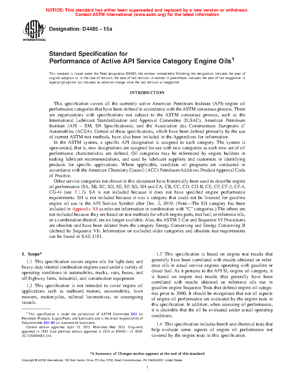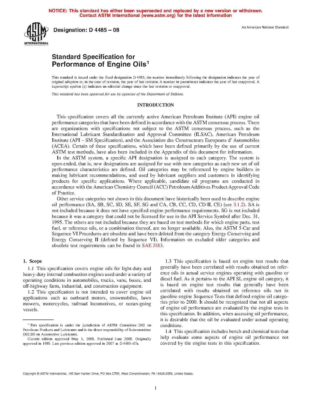 1.1 This specification covers engine oils for light-duty and heavy-duty internal combustion engines used under a variety of operating conditions in automobiles, trucks, vans, buses, and off-highway farm, industrial, and construction equipment.2