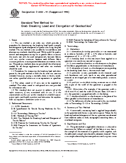 1.2 Procedures for measuring the breaking load and elongation by the grab method in both the dry and wet state are included; however, testing is normally done in the dry condition unless specified otherwise in an agreement or specification.