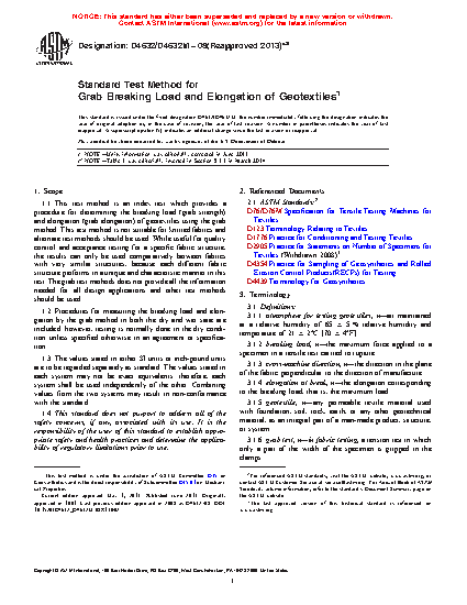 1.2 Procedures for measuring the breaking load and elongation by the grab method in both the dry and wet state are included; however, testing is normally done in the dry condition unless specified otherwise in an agreement or specification.