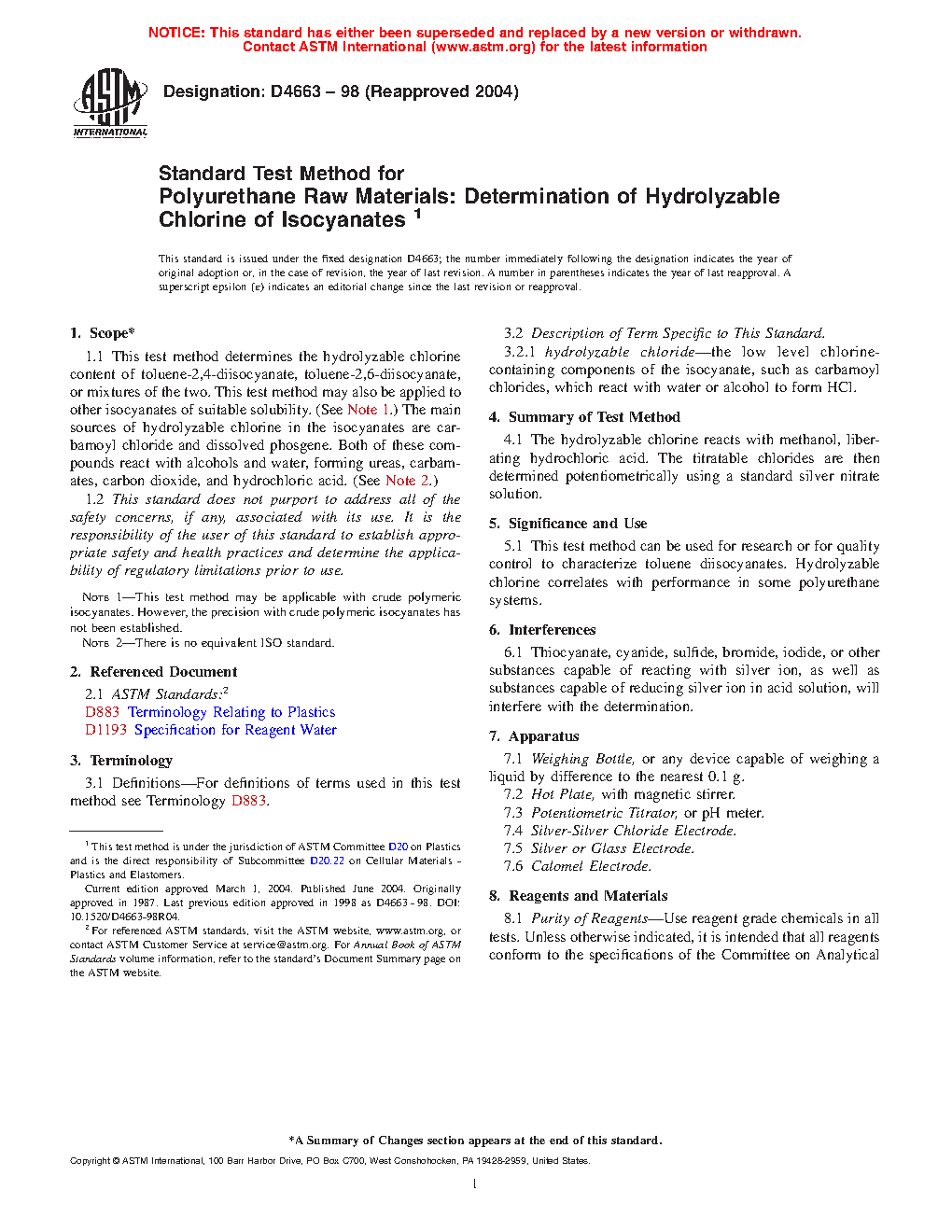 Note 1: It is possible that this test method is applicable to crude polymeric isocyanates. However, the precision with crude polymeric isocyanates has not been established.