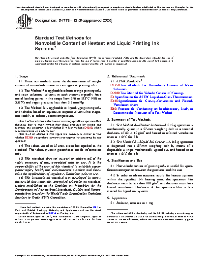 Note 2Test Method B (for liquid ink systems) is similar to Test Method D 2369 except that a solvent is not required for spreading the test specimen.