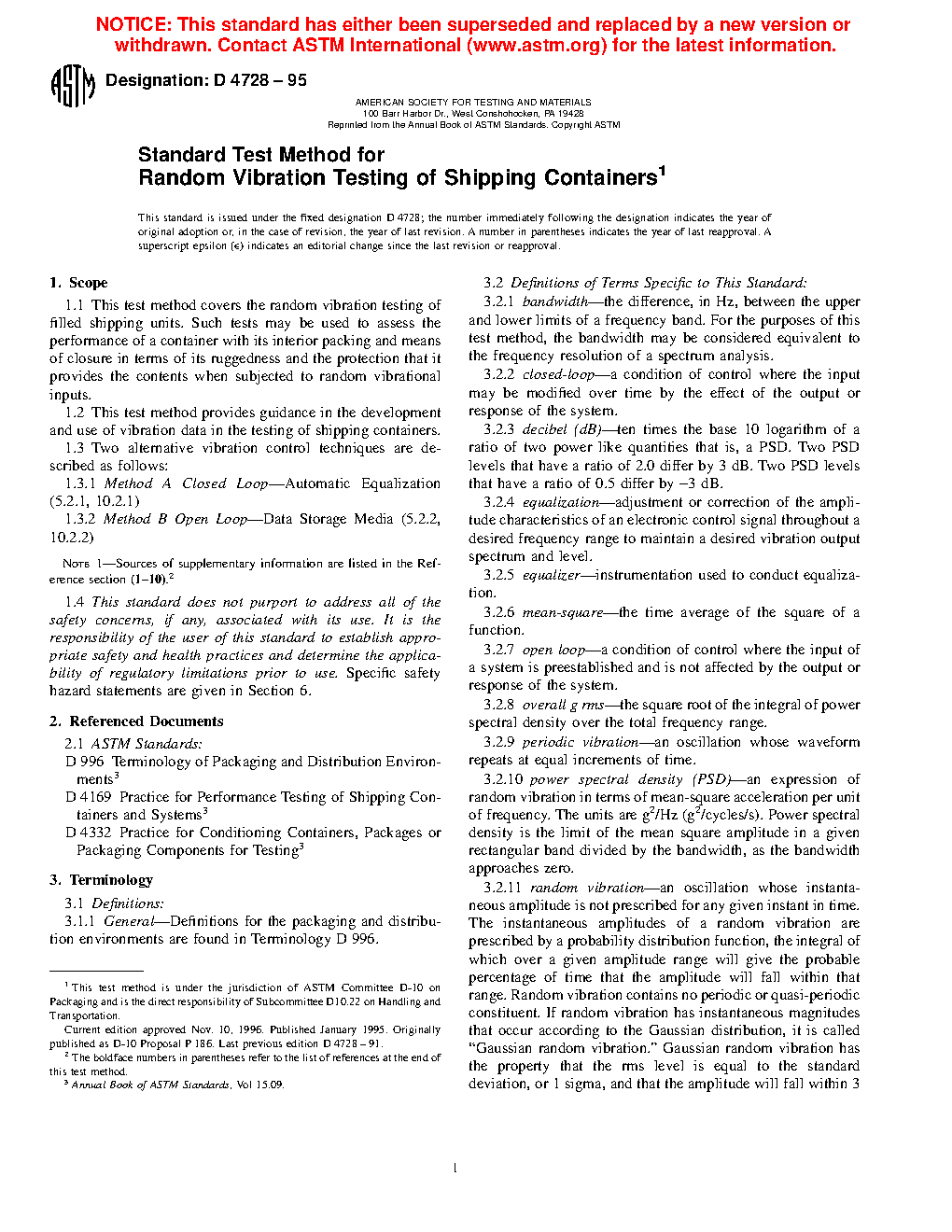 4.7 Random vibration may be conducted in any axis (vertical or horizontal) or in any package orientation. However, different test levels may be utilized for each axis depending on the field environment that is to be simulated.