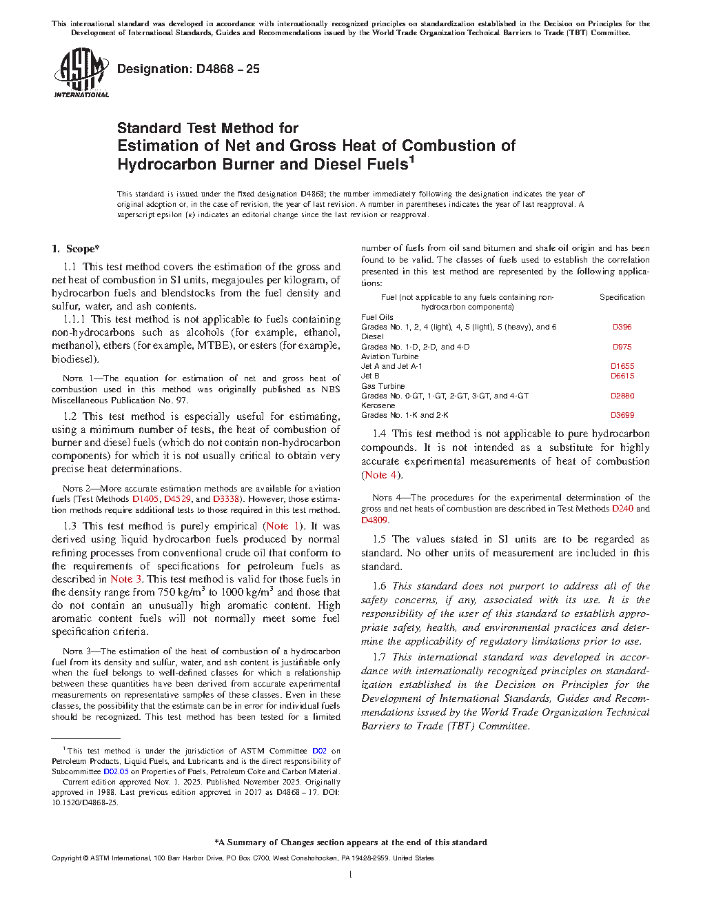 Note 4--The procedures for the experimental determination of the gross and net heats of combustion are described in Test Methods D240 and D4809.
