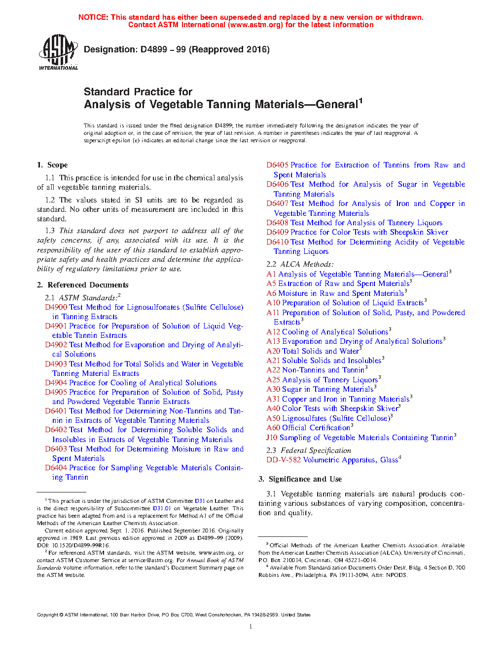 1.1 This practice is intended for use in the chemical analysis of all vegetable tanning materials.