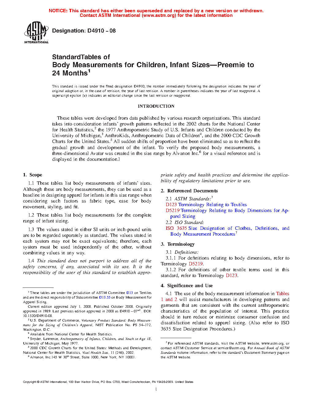 4.1 The use of the body measurement information in Tables 1 and 2 will assist manufacturers in developing patterns and garments that are consistent with the current anthropometric characteristics of the population of interest. This practice should in turn reduce or minimize consumer confusion and dissatisfaction related to apparel sizing. (Also refer to ISO 3635 Size Designation Procedures.)