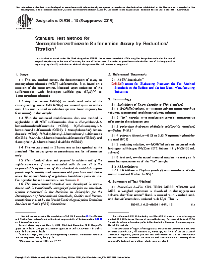 5.1 This test method is designed to assess the purity of 2-mercaptobenzothiazole sulfenamide accelerators. These products are used in combination with sulfur for the vulcanization of rubber.