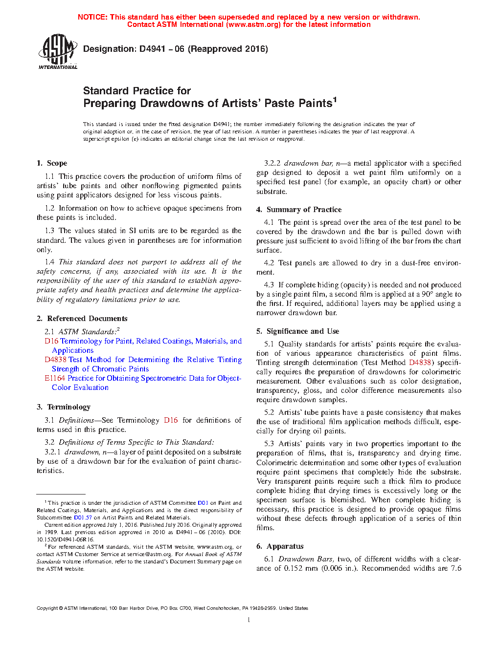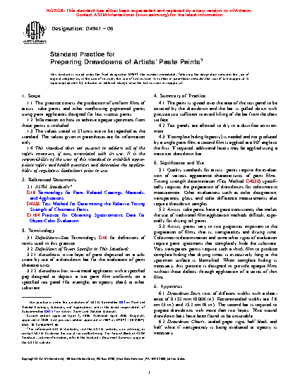 Standard Practice for Preparing Drawdowns of Artists' Paste Paints