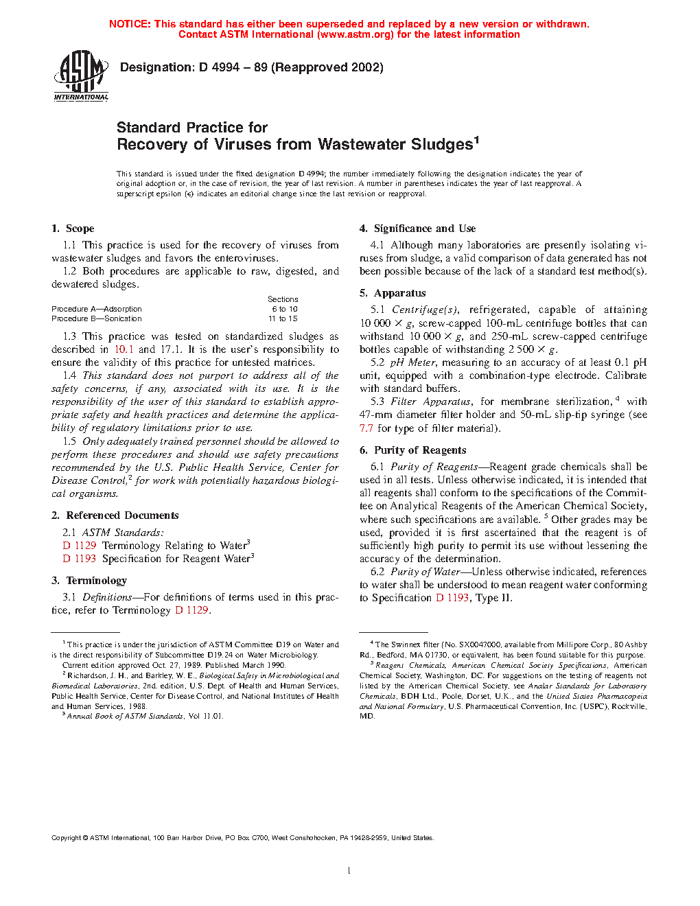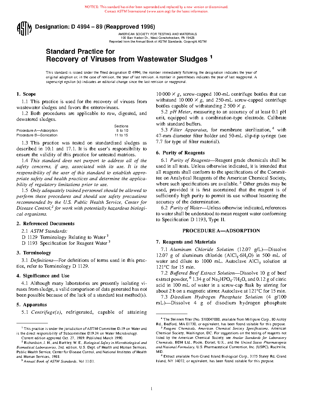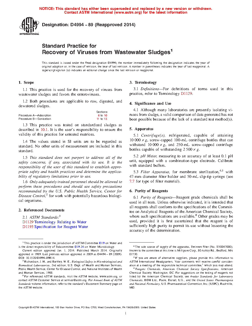 1.1 This practice is used for the recovery of viruses from wastewater sludges and favors the enteroviruses.