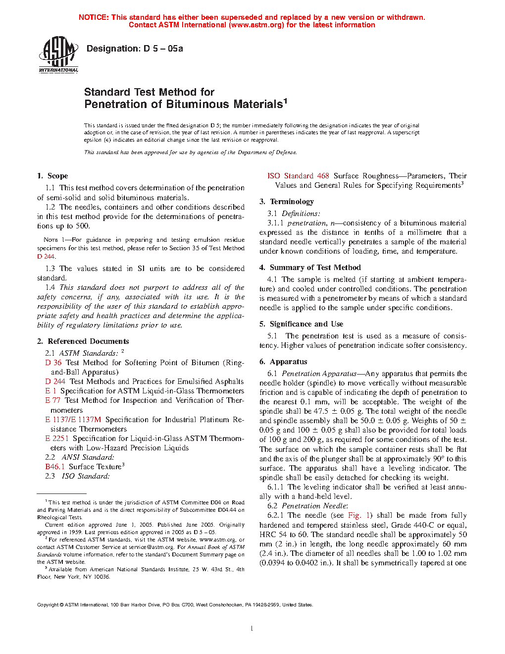 ASTM D5-06e1