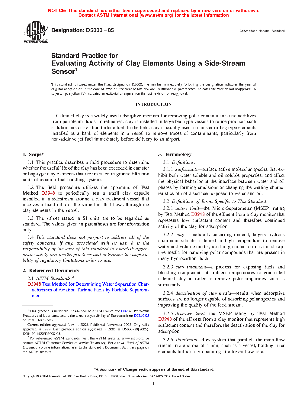 1.2 The field procedure utilizes the apparatus of Test Methods D3948 to periodically test a small clay capsule installed in a sidestream around a clay treatment vessel that receives a fixed ratio of the same fuel that flows through the clay elements in the vessel.
