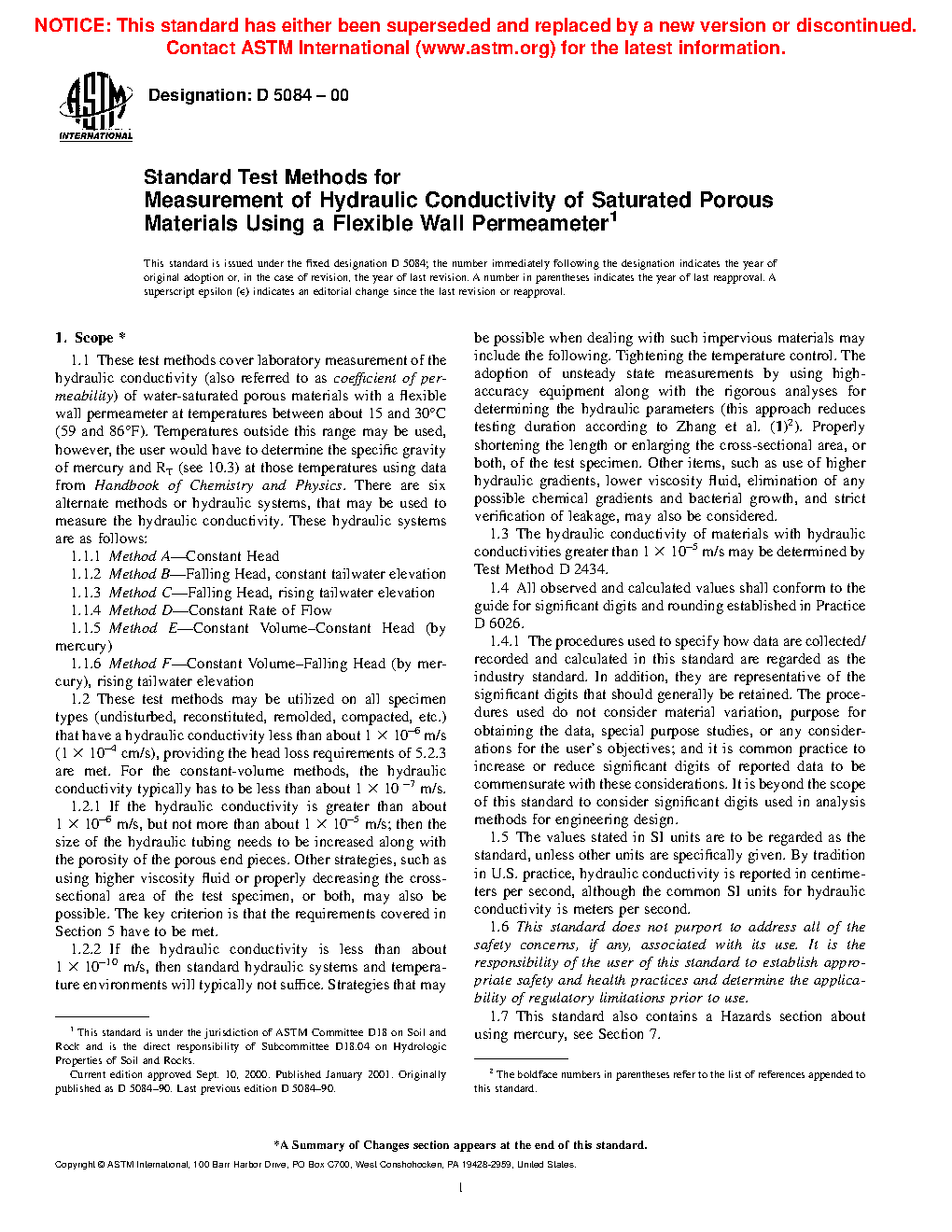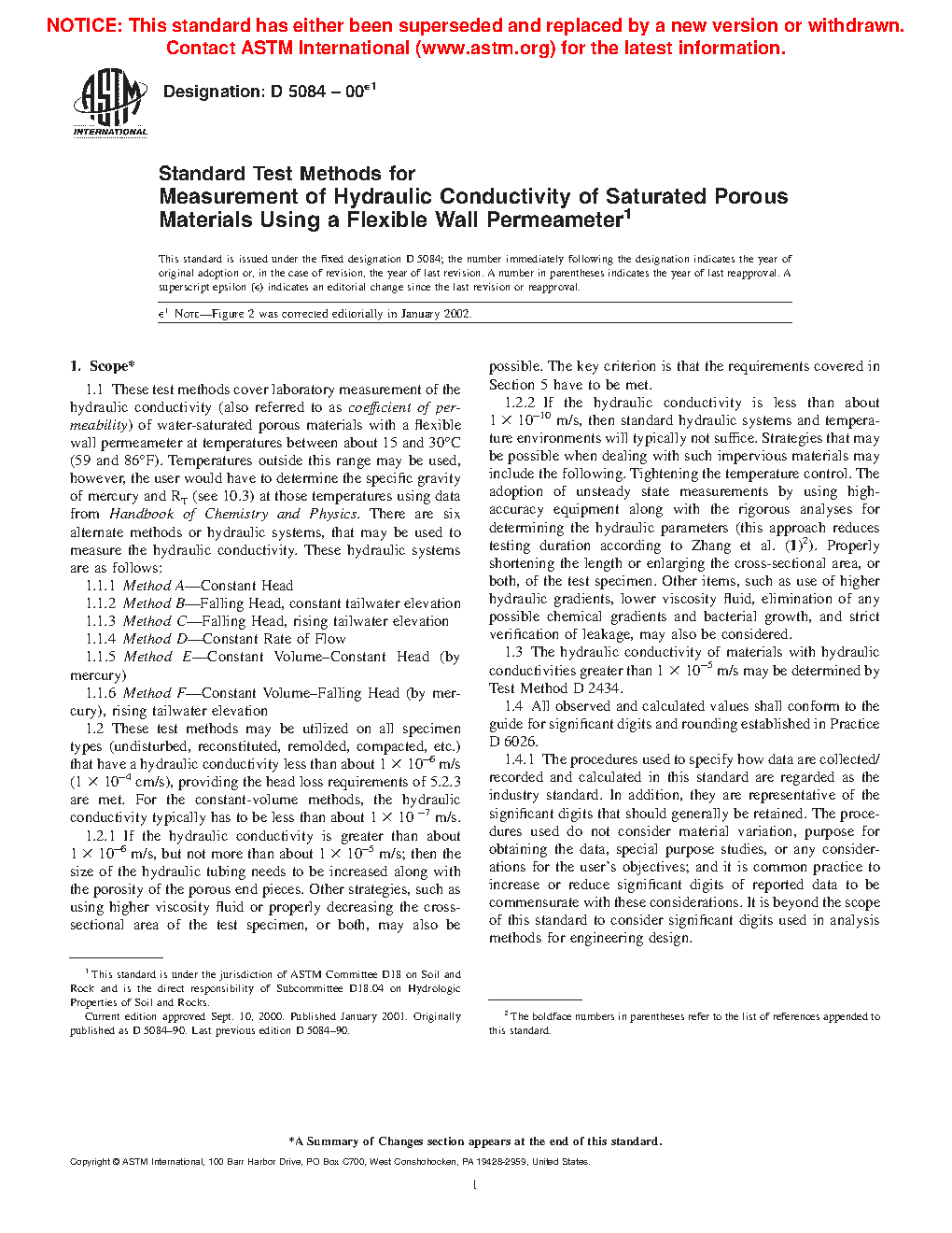 1.4 The hydraulic conductivity of materials with hydraulic conductivities greater than 1 × 10 -5 m/s may be determined by Test Method D2434.