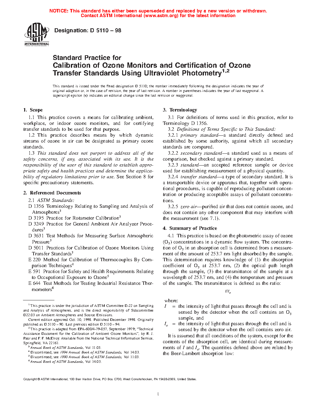 1.2 This practice describes means by which dynamic streams of ozone in air can be designated as primary ozone standards.