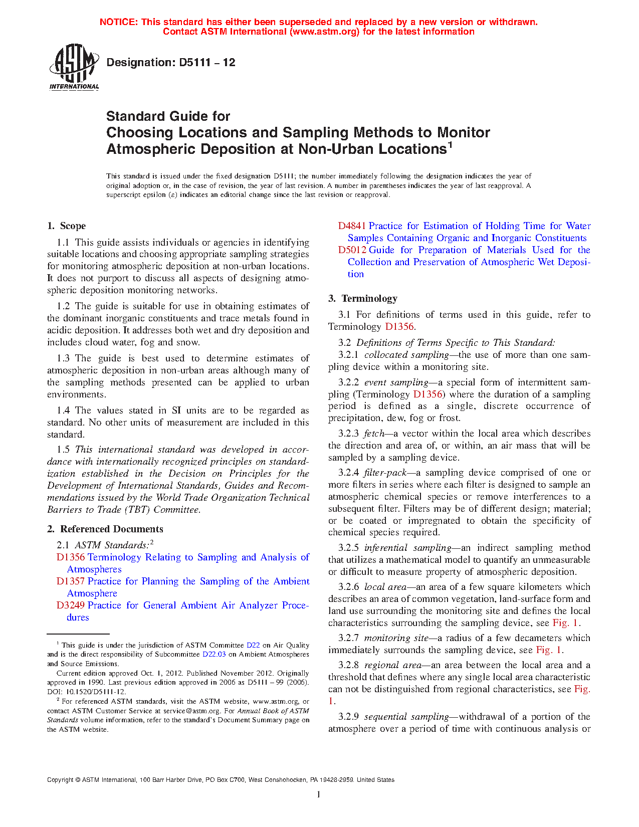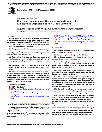 Standard Guide for Choosing Locations and Sampling Methods to Monitor Atmospheric Deposition at Non-Urban Locations