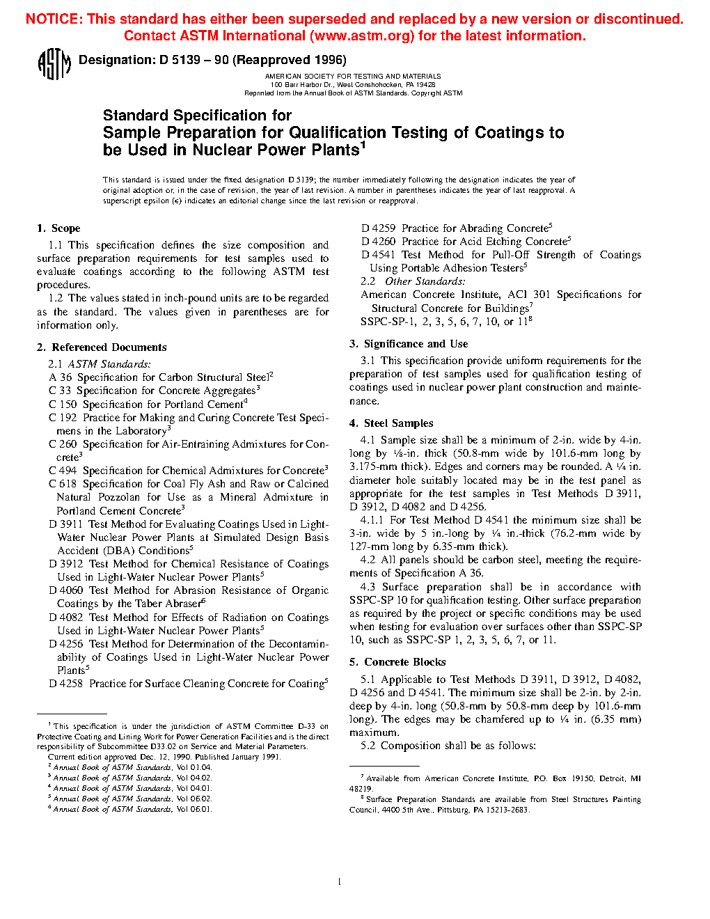 Standard Specification for Sample Preparation for Qualification Testing of Coatings to be Used in Nuclear Power Plants (Withdrawn 2010)