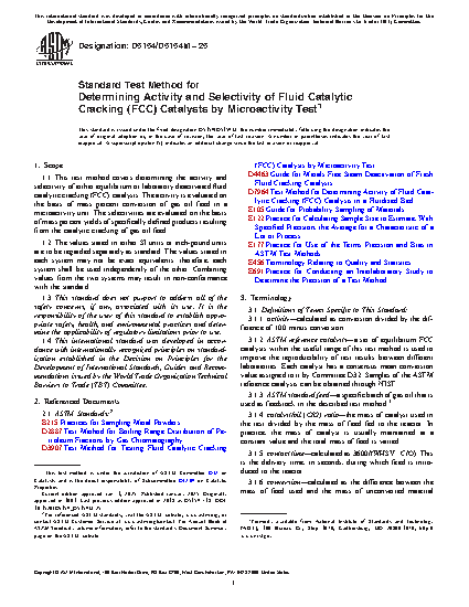 1.1 This test method covers determining the activity and selectivity of either equilibrium or laboratory deactivated fluid catalytic cracking (FCC) catalysts. The activity is evaluated on the basis of mass percent conversion of gas oil feed in a microactivity unit. The selectivities are evaluated on the basis of mass percent yields of specifically defined products resulting from the catalytic cracking of gas oil feed.