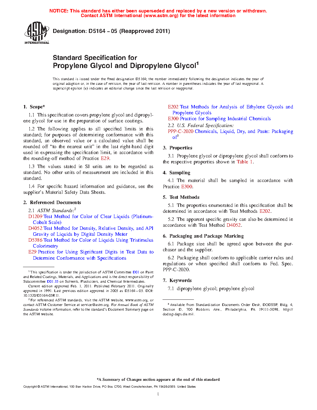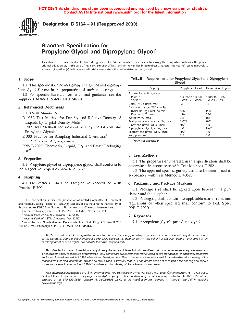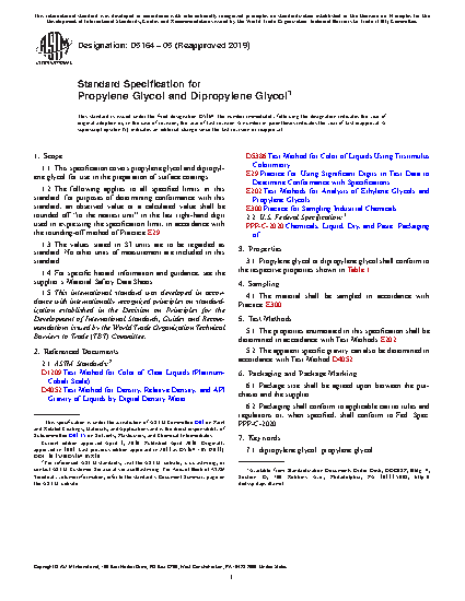 1.1 This specification covers propylene glycol and dipropylene glycol for use in the preparation of surface coatings.