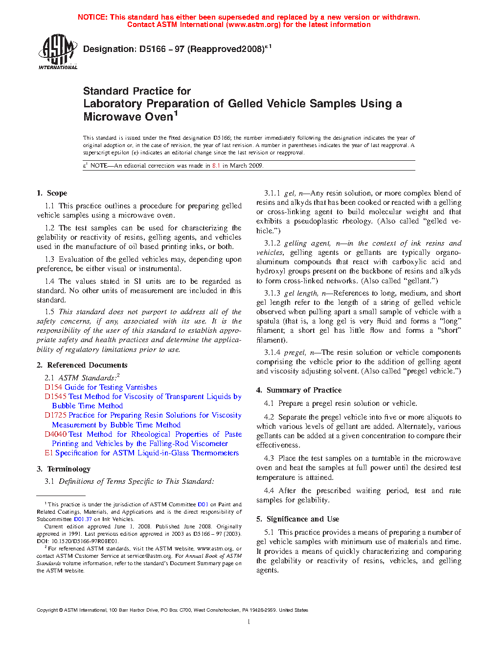 5.1 This practice provides a means of preparing a number of gel vehicle samples with minimum use of materials and time. It provides a means of quickly characterizing and comparing the gelability or reactivity of resins, vehicles, and gelling agents.