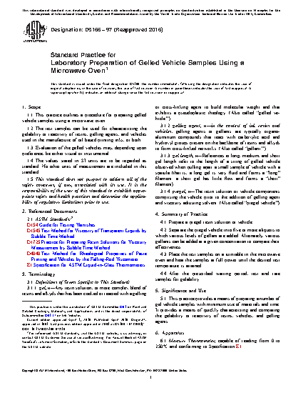 1.1 This practice outlines a procedure for preparing gelled vehicle samples using a microwave oven.